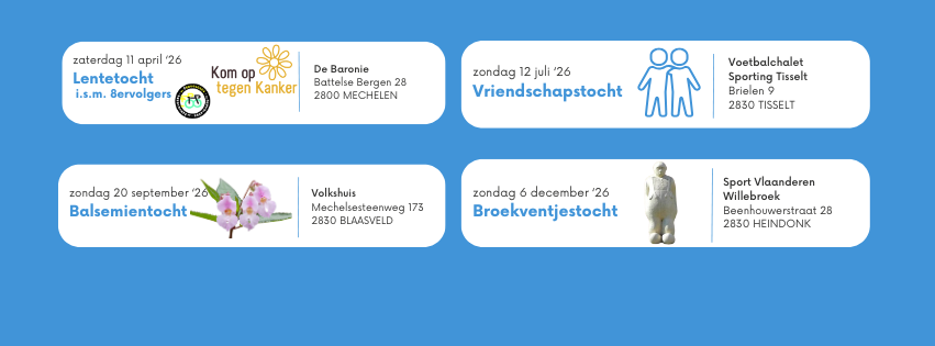 Hier vind je heel wat info over onze wandelclub, over de wandeltochten die we organiseren, over de prachtige streek waarin we wonen en wandelen, over onze komende en voorbije clubactiviteiten, waar we gaan wandelen…